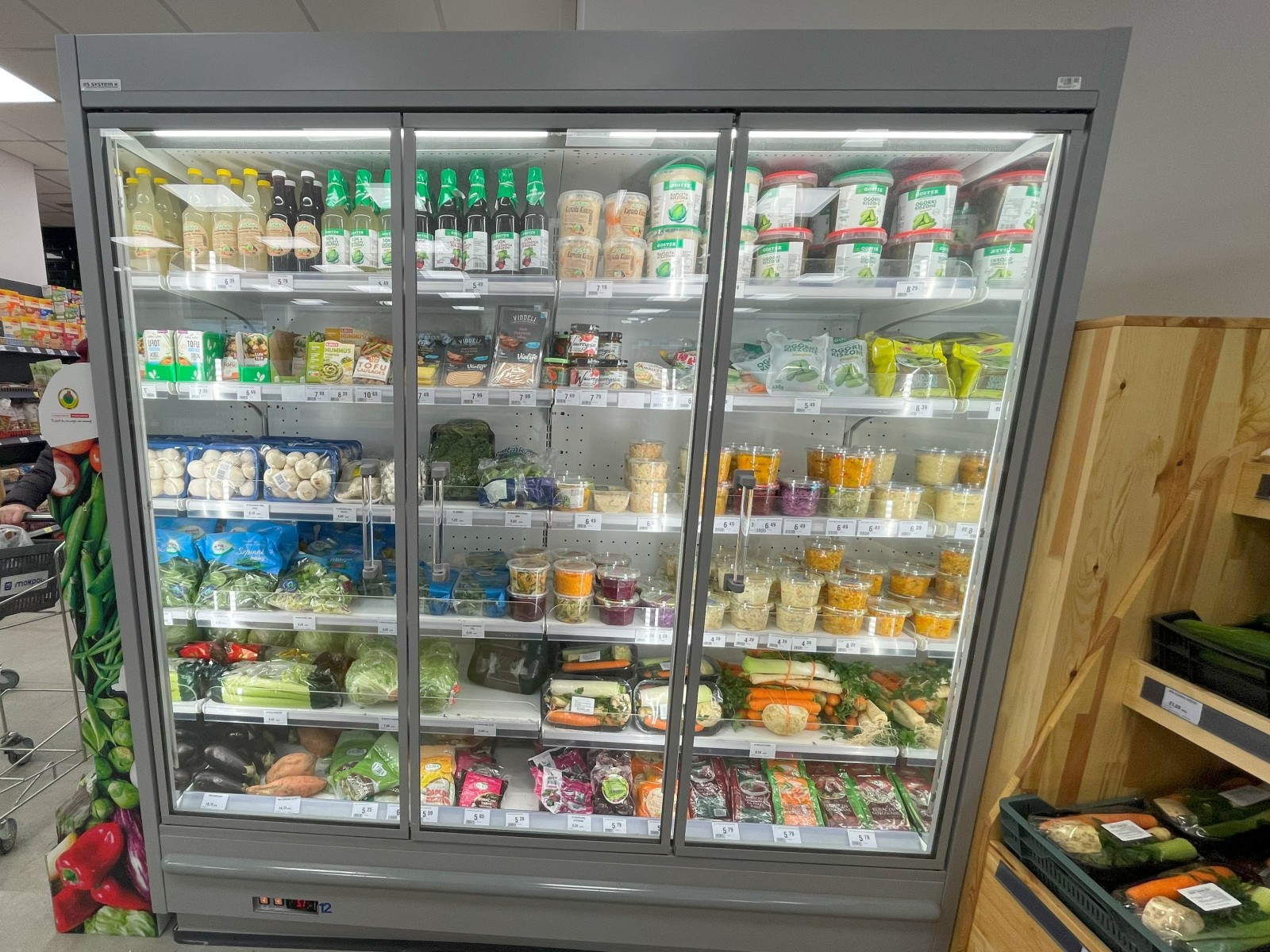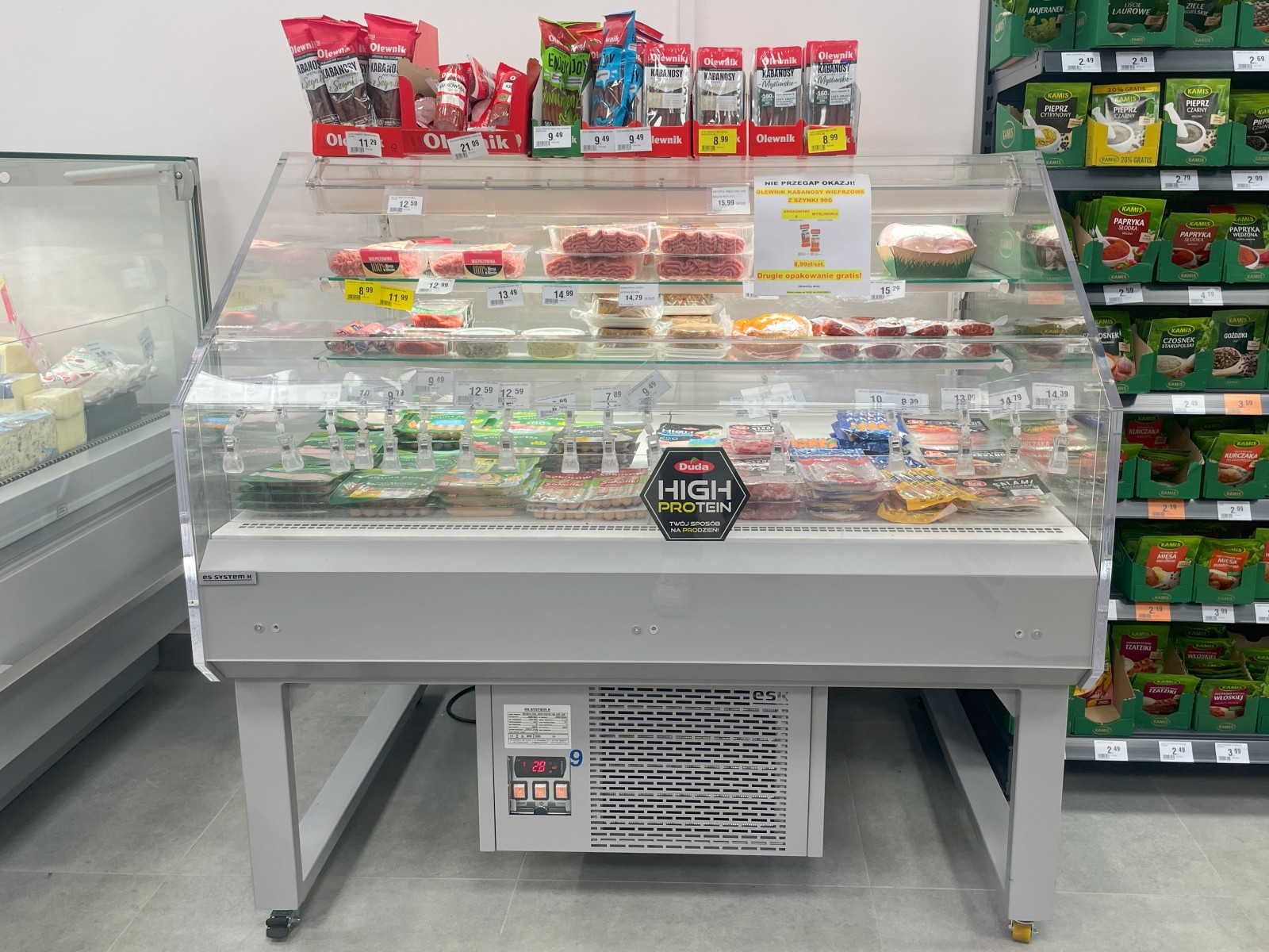 W tym obiekcie zastosowane zostały agregaty firmy Copeland ze sprężarkami Digital. Wykonaliśmy 2 układy chłodnicze: jeden dla mebli średniotemperaturowych, drugi dla niskotemperaturowych.